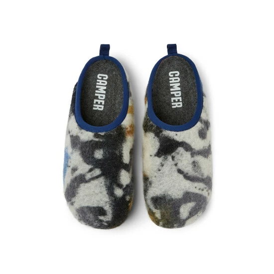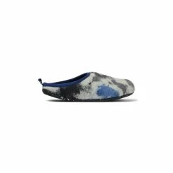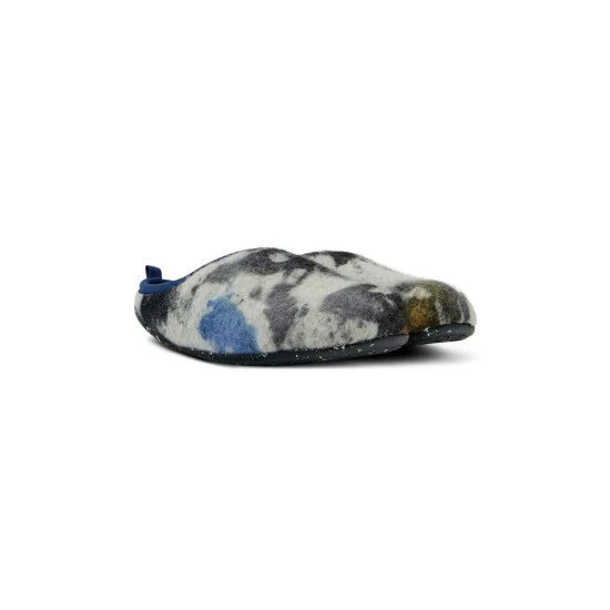 Blue, black and white recycled wool men’s slippers with EVA footbeds and rubber outsoles.This iconic Wabi slippers are inspired by Japanese minimalism. Made with the idea of keeping components and production processes to a minimum, these slippers continue to redefine indoor comfort more than twenty years after their debut with soft cushioning and a cozy feel.