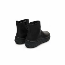 Women’s black ankle boot with zip. Full grain leather with Ortholite® footbed and Michelin rubber outsole.Ground reimagines urban street style by adding a contemporary twist on the industrial Camper aesthetic. The chunky outsole made with a mix of standard and natural rubber provides superior grip thanks to MICHELIN technology. Different, distinctive materials used for the sole and the upper, 360° stitching, premium leathers certified by the Leather Working Group enhance its silhouette and elevate this style for winter. Upper: Calfskin. Color: Black. Outsole/Features: Michelin outsole for superior grip and durability. Rubber for extraordinary grip.