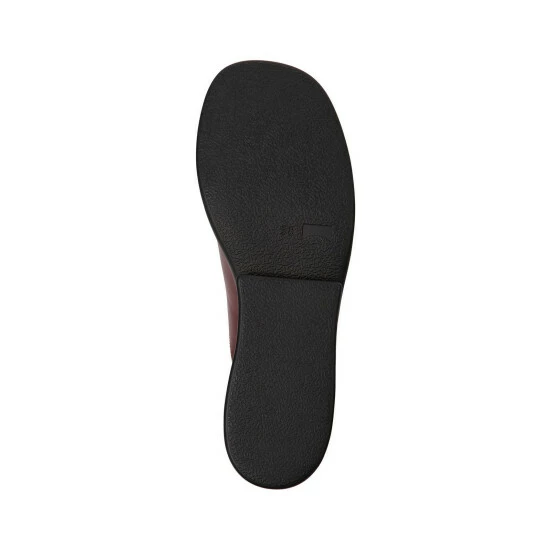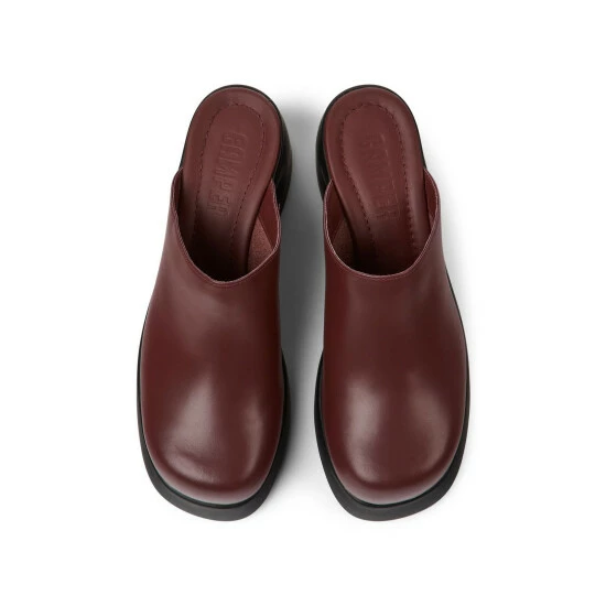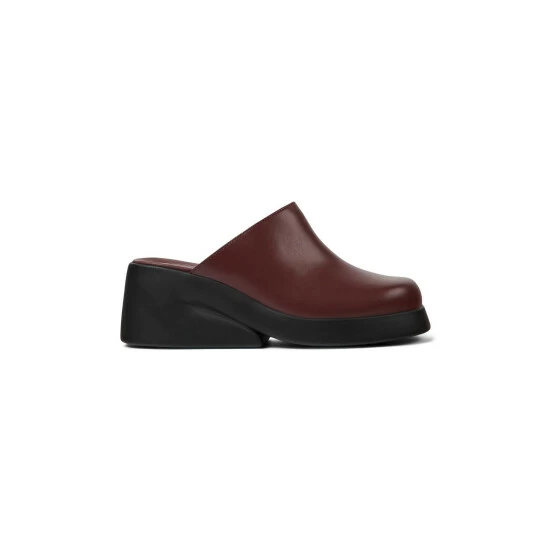 Burgundy leather women’s mules with wedge heels, Ortholite® Recycledâ„¢ footbeds, and PU outsoles.With a bold, contemporary design inspired by Futurism and Brutalism, Kaah sandals offer a playful twist on avant-garde style.