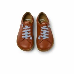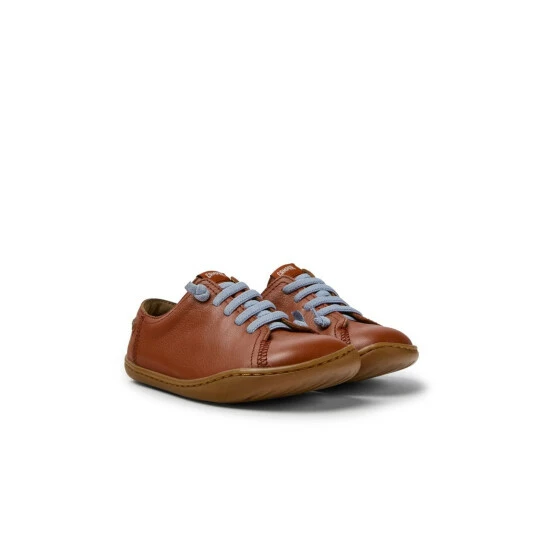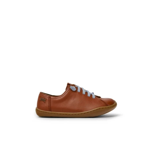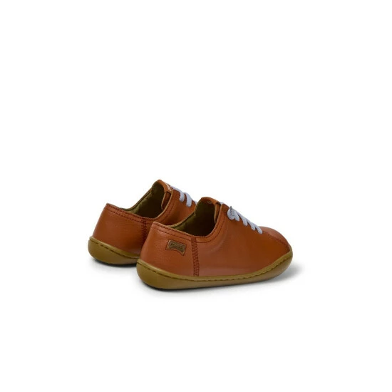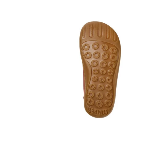 Red leather kids’ shoes with recycled PET elastic laces and 100% rubber outsoles (20% recycled). A Camper Icon that evolves with every season. Peu is functional simplicity inspired by walking barefoot. It is 360-degree stitched and built with a Strobel construction technique, guaranteeing unmatched flex and durability under any conditions.