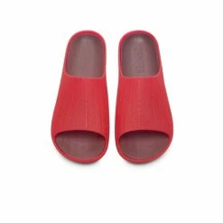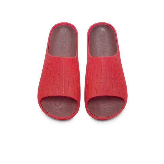 Monomaterial Wabi sandal made of 20% recycled TPU and 100% recyclable in red for men. PU removable footbed. A Little Better, Never Perfect. Our iconic Wabi slippers are inspired by Japanese minimalism and encourage us to focus on the now. Made with the idea of keeping components and production processes to a minimum, these men’s slippers continue to redefine indoor comfort more than twenty years after their debut with soft cushioning and a cozy feel.